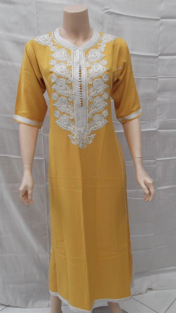 Fabriqué localement du tissu Sousdi de très bonne qualité, brodé soigneusement à la machine de manière typiquement artisanale. Un Caftan demi manche avec motif Sfifa. Cette tenue convient très bien aux soirées ou aux réunions de famille (comme le baptême ou les fiançailles), elle est jolie, facile à porter et très douce, elle est un incontournable de votre garde-robe. De belles couleurs sont disponibles. Pour une meilleure satisfaction de notre clientèle, SOUK ARTISANAL vous offre l’opportunité de bénéficier des produits personnalisés sous commande (choix large de couleurs, tailles, motifs…). Taille : S–M-L-XL