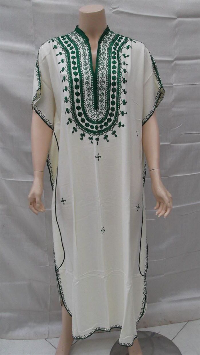 Fabriqué localement du tissu Sousdi de très bonne qualité, brodé soigneusement à la machine de manière typiquement artisanale. Un Caftan demi manche avec motif Siahia. Cette tenue convient très bien aux soirées ou aux réunions de famille (comme le baptême ou les fiançailles), elle est jolie, facile à porter et très douce, elle est un incontournable de votre garde-robe. Il se lave parfaitement à la machine. Le caftan se porte large, conforme à toutes les tailles. De belles couleurs sont disponibles. Pour une meilleure satisfaction de notre clientèle, SOUK ARTISANAL vous offre l’opportunité de bénéficier des produits personnalisés sous commande…