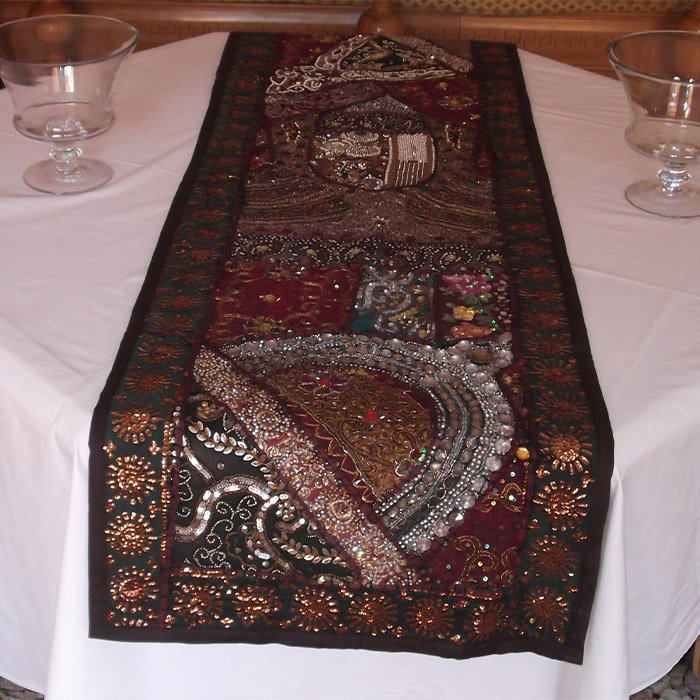 Utilisez tous les chiffons pour coudre un chemin de table original ! Il ajoutera une ambiance chic à votre table et la protégera des plats surchauffés. Il peut remplacer les nappes de manière très avantageuse. Sa fabrication est basée sur le recyclage des vieux vêtements en paillettes, connu également sous le nom du Patchwork. Pour une meilleure satisfaction de notre clientèle, SOUK ARTISANAL vous offre l’opportunité de bénéficier des produits personnalisés sous commande (choix large de couleurs, dimensions, motifs…). Produit multiusage ; employé également sur pieds de lit ou comme Wall hanging (appliques murale) Dimensions : 1.50mx50cm.