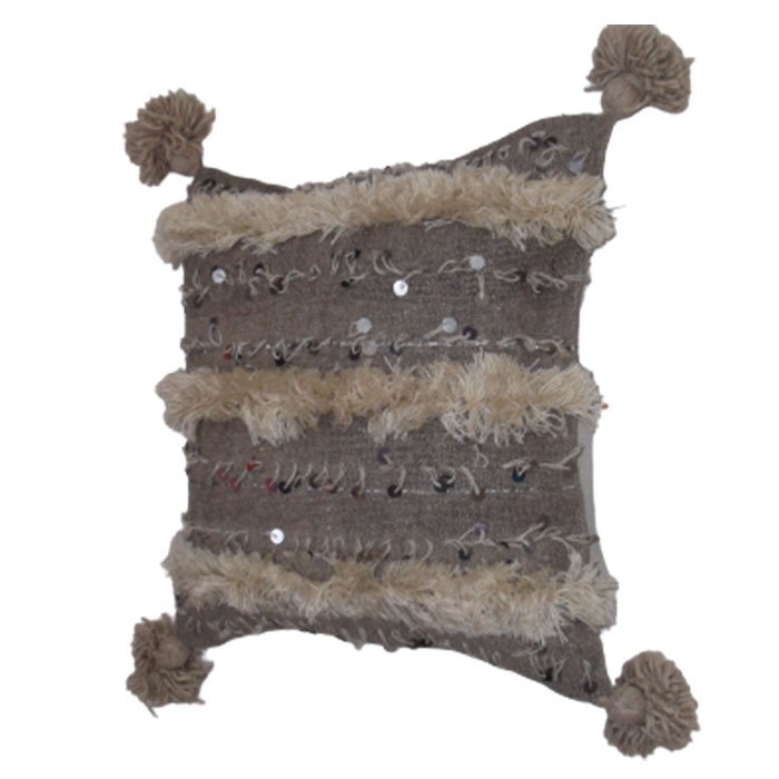 Nous vous proposons une variété de coussins marocains en différentes couleurs, mais le prix est toujours très abordable ! Réalisés par des paillettes à base de de la couverture 100% coton. Coussins simples décorés par des motifs pompons, paillettes et granges. Ils se lavent parfaitement à la machine à 30C°. Pour une meilleure satisfaction de notre clientèle, SOUK ARTISANAL vous offre l’opportunité de bénéficier des produits personnalisés sous commande (choix large de couleurs, dimensions, motifs…). Produit multiusage ; employé comme coussin ou galette pour chaises. Dimensions : 45cmx45cm.