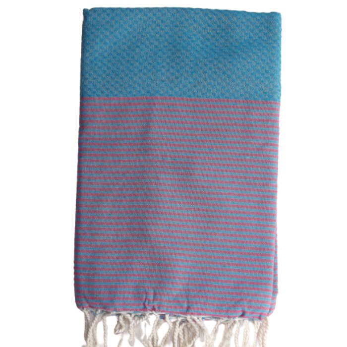 Nos serviettes nid d’abeilles à usage personnel sont en 100% coton, fabriquées avec amour pour nos chers clients. Elles exigent des heures de travail soigné et précis. Le plus grand avantage de ces serviettes de plage est qu’elles peuvent bien couvrir le fauteuil inclinable, et comme le tissage serré peut retenir le sable, il présente de nombreux avantages. La Fouta est facile à nettoyer, à sécher et à transporter, et grâce à sa mini position dans une valise ou un sac, elle facilitera votre quotidien et vos déplacements. Elles sont connues au Maroc sous le nom de « Fouta ». Elles peuvent…