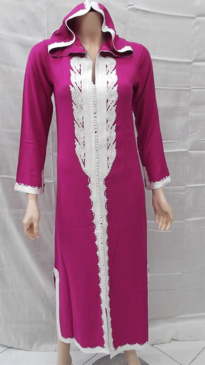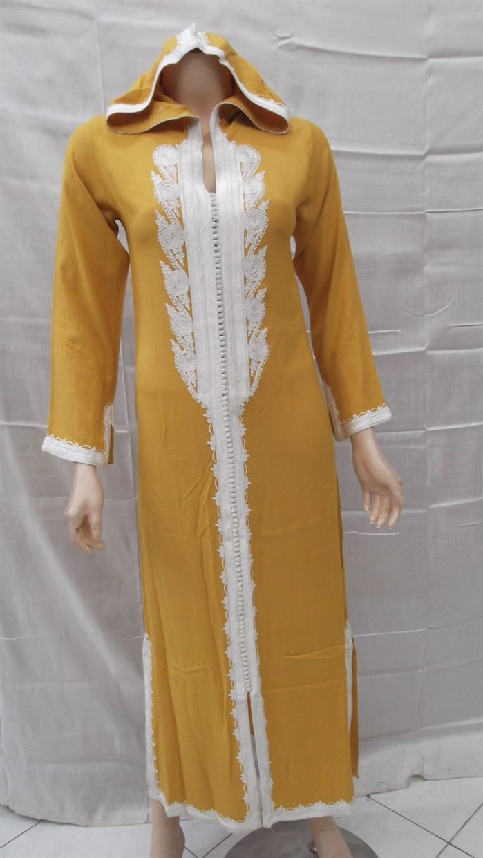 La Djellaba avec capuchon fabriquée par le tissu Sousdi de très bonne qualité de manière typiquement artisanale. C’est un vêtement courant utilisé par les hommes et les femmes. Il est porté lors des fêtes religieuses et de certaines cérémonies. La Djellaba est taillée dans du velours, de la soie ou du brocart, et est généralement même brodée de fil d’or, d’argent ou de soie. C’est un vêtement tendance indispensable dans toute garde-robe marocaine. Elle se lave parfaitement à la machine. Plusieurs tailles sont disponibles. Tailles : S-M-L-XL