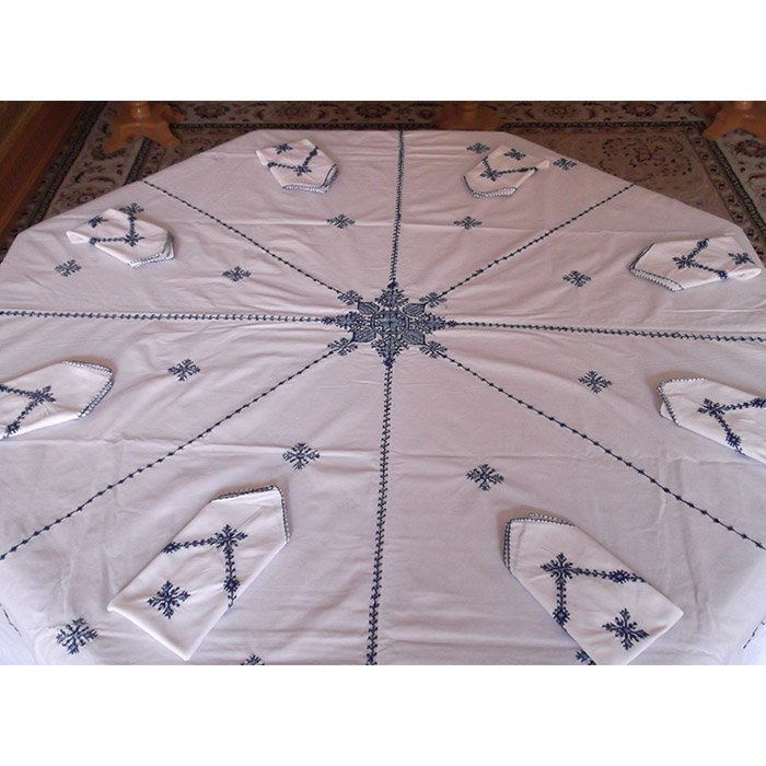 Des nappes en coton tissés et brodé à la main de manière typiquement artisanale et avec des tons en couleur. Ils se fabriquent localement dans nos ateliers à Marrakech. Ils se lavent parfaitement à la machine à 30 C°. En outre, le lavage en sec est vivement conseillé. Pour une meilleure satisfaction de notre clientèle, SOUK ARTISANAL vous offre l’opportunité de bénéficier des produits personnalisés sous commande (choix large de couleurs, dimensions, motifs…). Une pièce joker se démarquant par le caractère multiusage, elle peut être utilisée comme détenteurs murale (Wall hanging), pied de lit ou décoration canapé. Diamètre : 3m. Dimensions : Carré :…