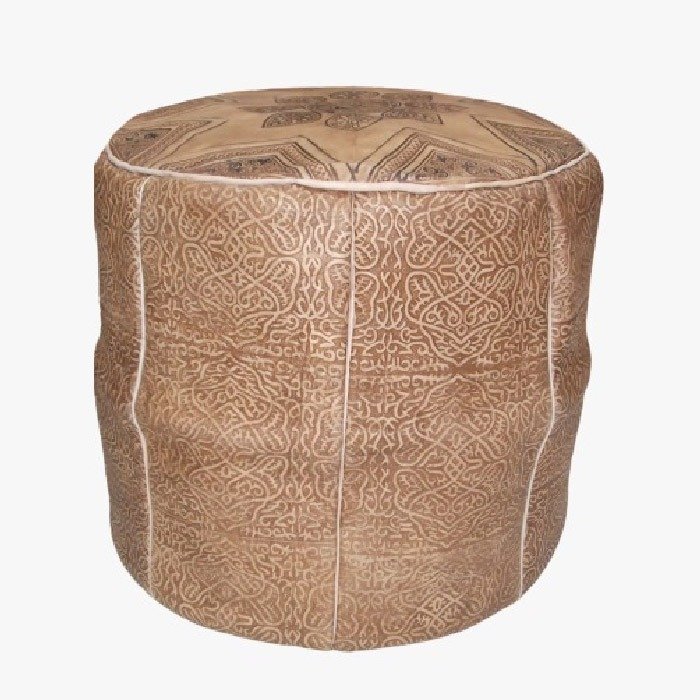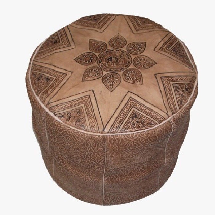 Profitez du confort extrême de ce pouf dans votre Salon. Joli pouf en cuir de mouton décoré par des motifs de couture faite à la machine, avec une fermeture en bas. Pour une meilleure satisfaction de notre clientèle, SOUK ARTISANAL vous offre l’opportunité de bénéficier des produits personnalisés sous commande (choix large de couleurs, dimensions, motifs…). Dimension : Hauteur : 40 cm Diamètre : 40 cm.