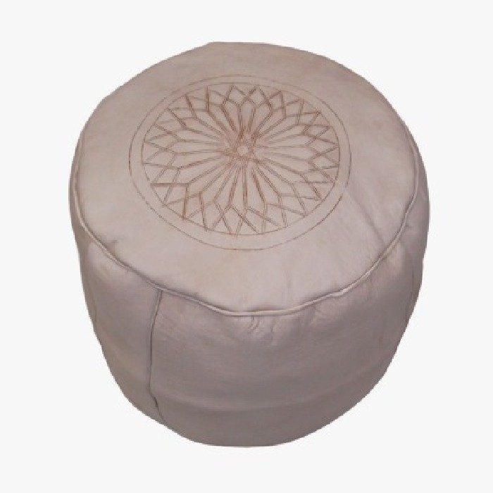 Profitez du confort extrême de ce pouf dans votre Salon. Joli pouf en cuir de mouton décoré par des motifs de couture faite à la machine, avec une fermeture en bas. Pour une meilleure satisfaction de notre clientèle, SOUK ARTISANAL vous offre l’opportunité de bénéficier des produits personnalisés sous commande (choix large de couleurs, dimensions, motifs…). Dimension : Hauteur : 40 cm Diamètre : 40 cm.