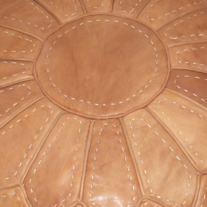 Profitez du confort extrême de ce pouf dans votre Salon. Joli pouf en cuir de chèvre doublé et molletonné, décoré par des motifs de couture faites à la main dans nos ateliers à Marrakech, avec une fermeture en bas. Pouf de haute qualité, solide et confortable. Vendu non rempli. Pour une meilleure satisfaction de notre clientèle, SOUK ARTISANAL vous offre l’opportunité de bénéficier des produits personnalisés sous commande (choix large de couleurs, dimensions, motifs…). Dimension : Hauteur : 35 cm Diamètre : 55 cm.