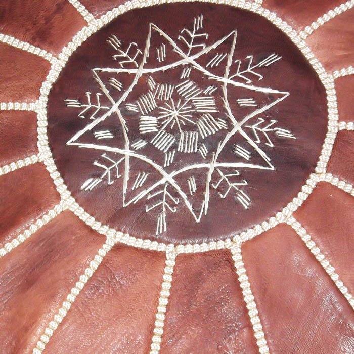 Profitez du confort extrême de ce pouf dans votre Salon. Joli pouf en cuir de chèvre doublé et molletonné, décoré par des motifs de broderie et couture faites à la main dans nos ateliers à Marrakech, avec une fermeture en bas. Pouf de haute qualité, solide et confortable. Vendu non rempli. Pour une meilleure satisfaction de notre clientèle, SOUK ARTISANAL vous offre l’opportunité de bénéficier des produits personnalisés sous commande (choix large de couleurs, dimensions, motifs…). Dimension : Hauteur : 35 cm Diamètre : 55 cm.