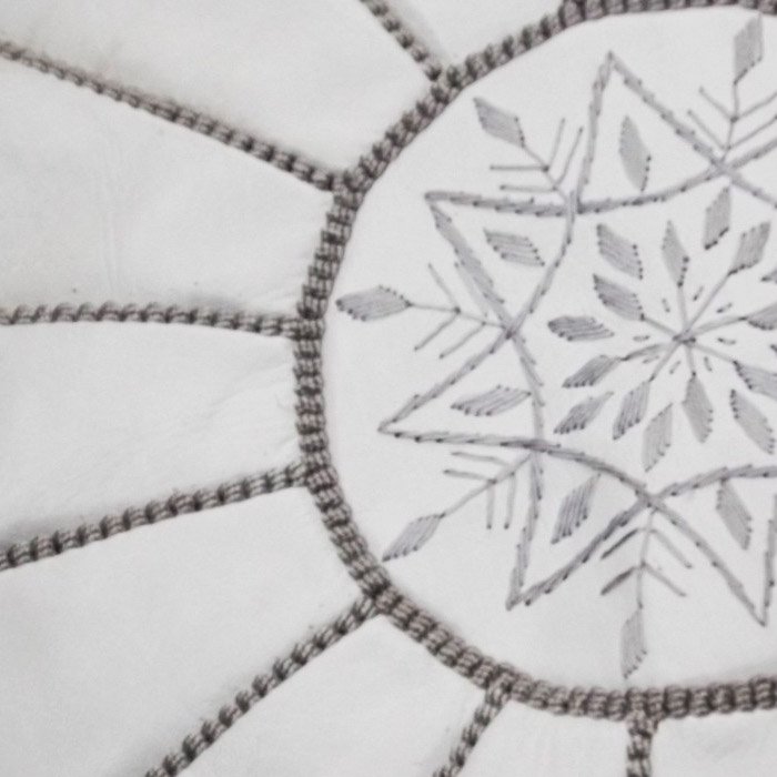 Profitez du confort extrême de ce pouf dans votre Salon. Joli pouf en cuir de chèvre doublé et molletonné, décoré par des motifs de broderie et couture faites à la main dans nos ateliers à Marrakech, avec une fermeture en bas. Pouf de haute qualité, solide et confortable. Vendu non rempli. Pour une meilleure satisfaction de notre clientèle, SOUK ARTISANAL vous offre l’opportunité de bénéficier des produits personnalisés sous commande (choix large de couleurs, dimensions, motifs…). Dimension : Hauteur : 35 cm Diamètre : 55 cm.